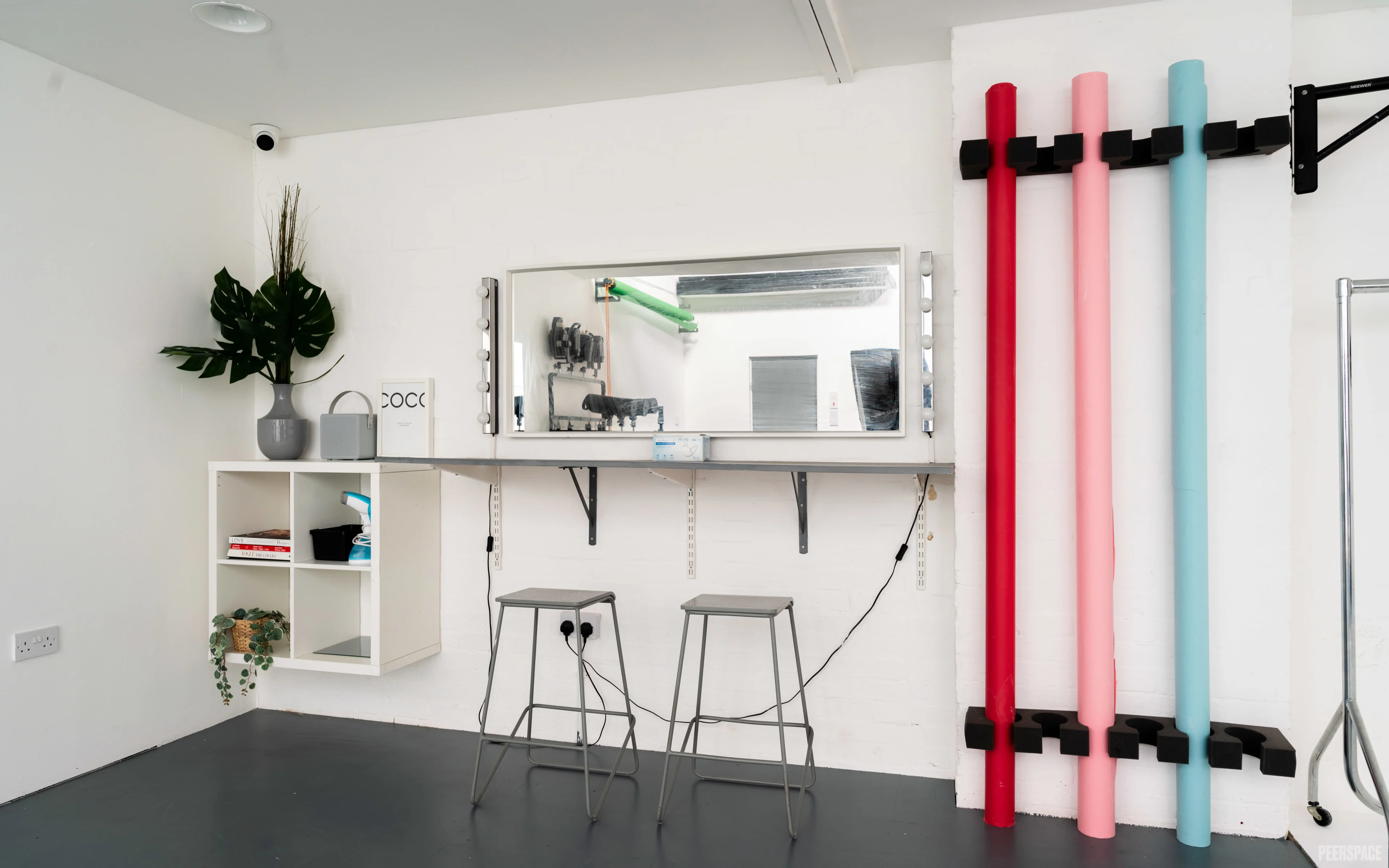One thing our teams notice every time is the great makeup and styling station. It is spacious, properly lit and designed in a way that lets MUAs work quickly without being squeezed by the rest of the set. Brushes, palettes, hair tools and products have room to breathe, which means the work can stay precise even when the schedule is tight. Stylists can organise looks, switch pieces out and reset the table without creating a bottleneck. It is a small detail, but it shapes the start of the day in a meaningful way. The rest of the studio layout is just as considered. There is a reliable cove, a broad selection of backdrops, a mezzanine that becomes a green room, a styling corner or a second set depending on the needs of the shoot, and a kitchenette and shower that make longer days more manageable. There is enough space for teams to move freely without knocking into equipment or one another. It feels like a room designed by people who understand how creative work actually unfolds hour by hour.